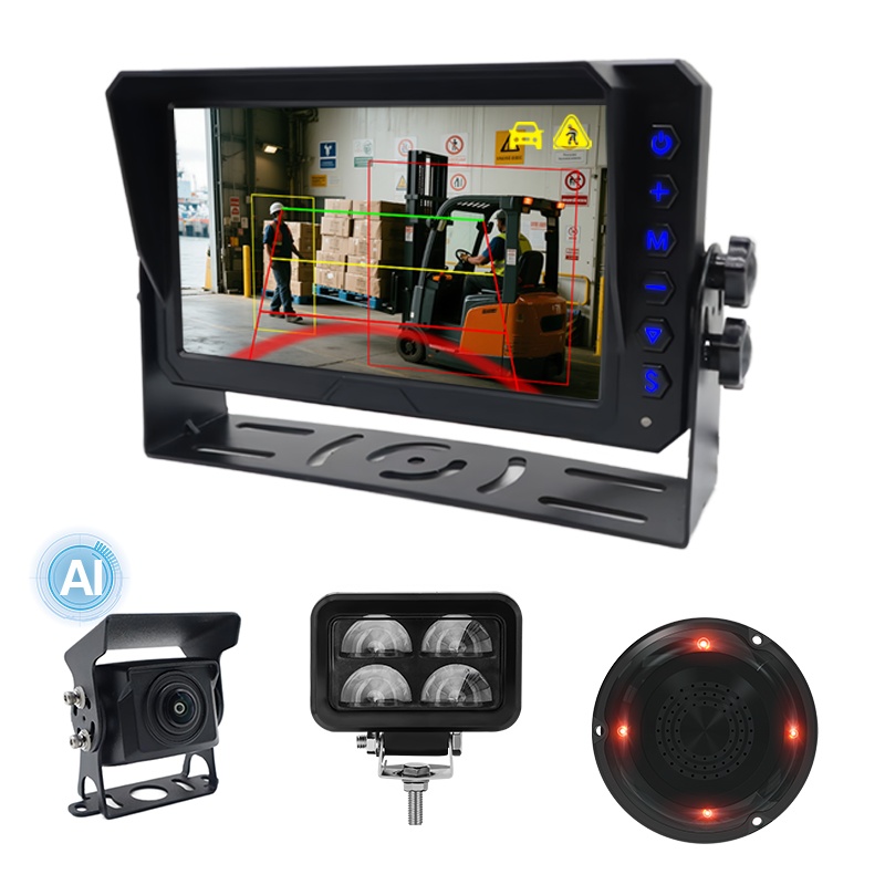 Leder AI fodgænger- og køretøjsdetektions-laserlys-advarselskamerasystem til gaffeltruck, et AI BSD-kamerasystem, der fungerer til gaffeltruck, udstyret med et U-formet laseradvarselslys og en lyd- og lysalarm, som gør det muligt at få en bedre ydeevne til at advare omgivende fodgængere og køretøjer for at forlade en afstand fra den fungerende gaffeltruck. Dette system understøtter AI blindvinkeldetektionsfunktion, kan detektere fodgængere og køretøjer. Indbygget AI-kalibreringsmenu til at justere detektionszone, fodgængerregistrering til/fra, køretøjsdetektering til/fra osv. En avanceret løsning til at øge sikkerheden ved betjening af gaffeltruck.