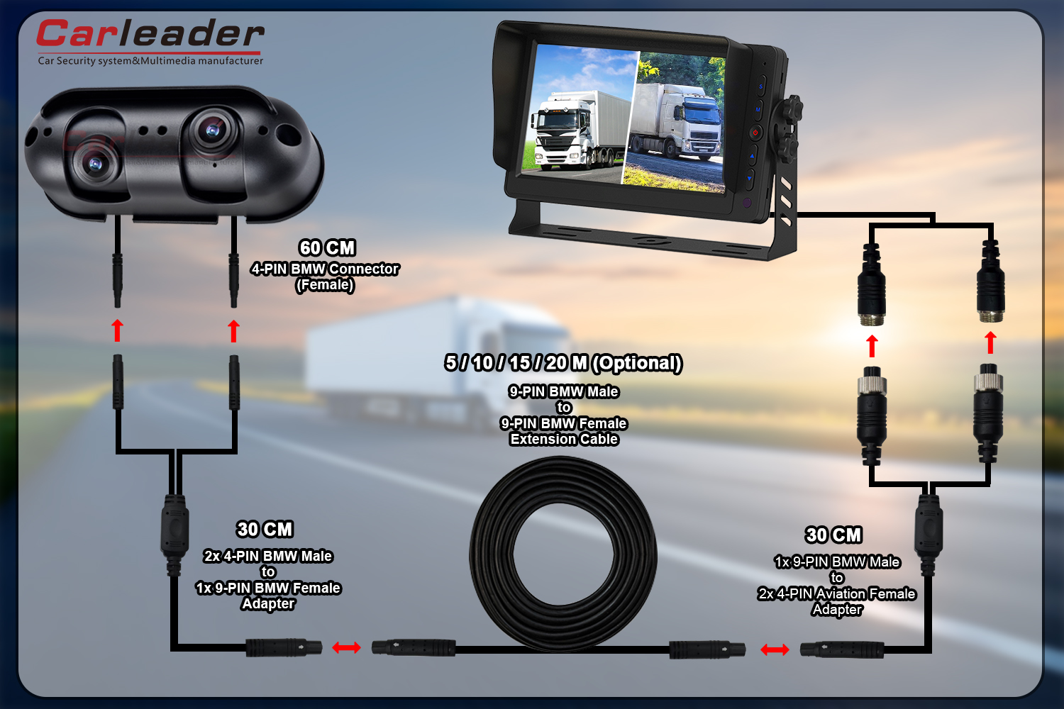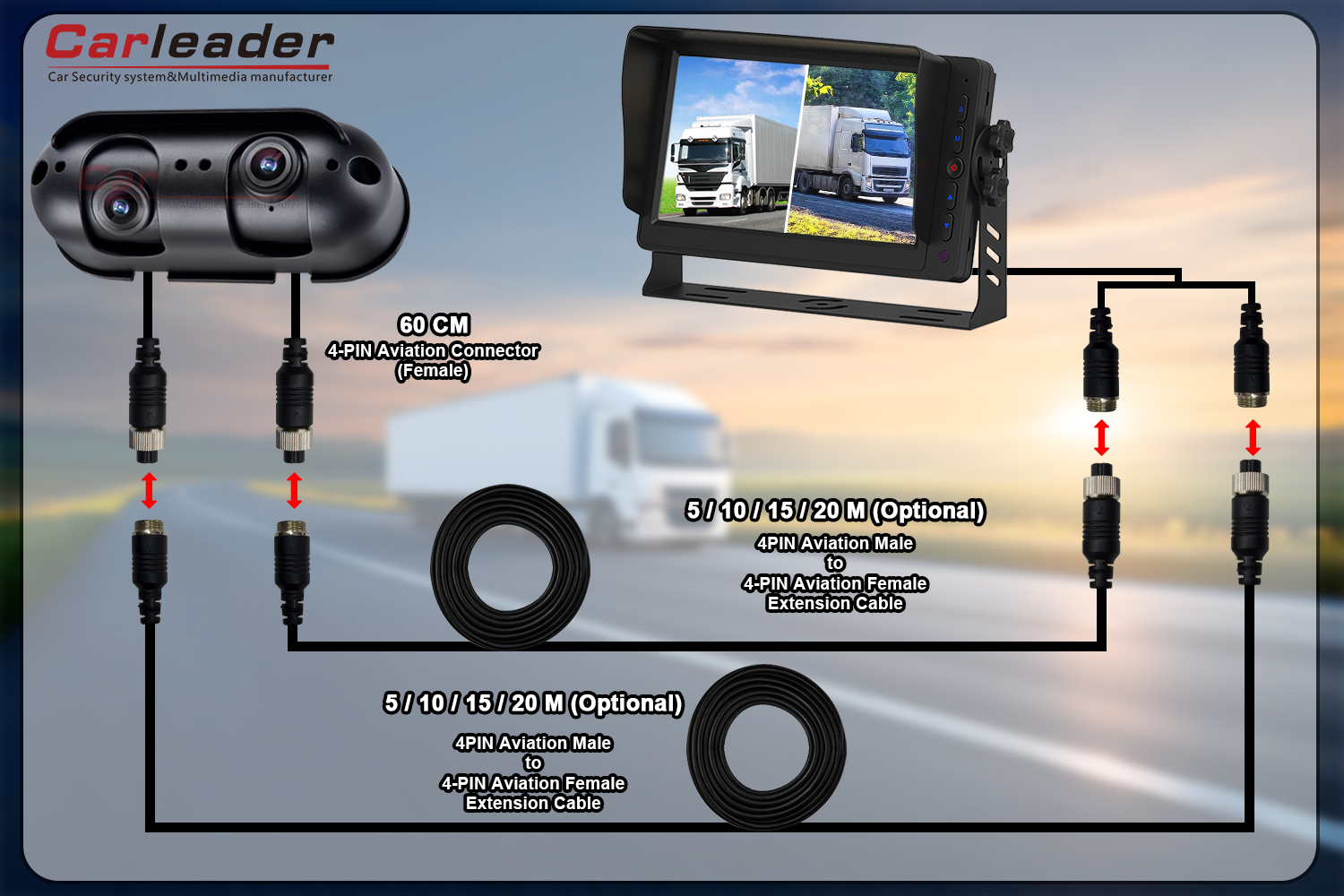 Ledertilbyder to forskellige ledningsløsninger til Starlight AHD Dual Lens Heavy Duty bakkamera, der passer til forskellige ledningsbehov: