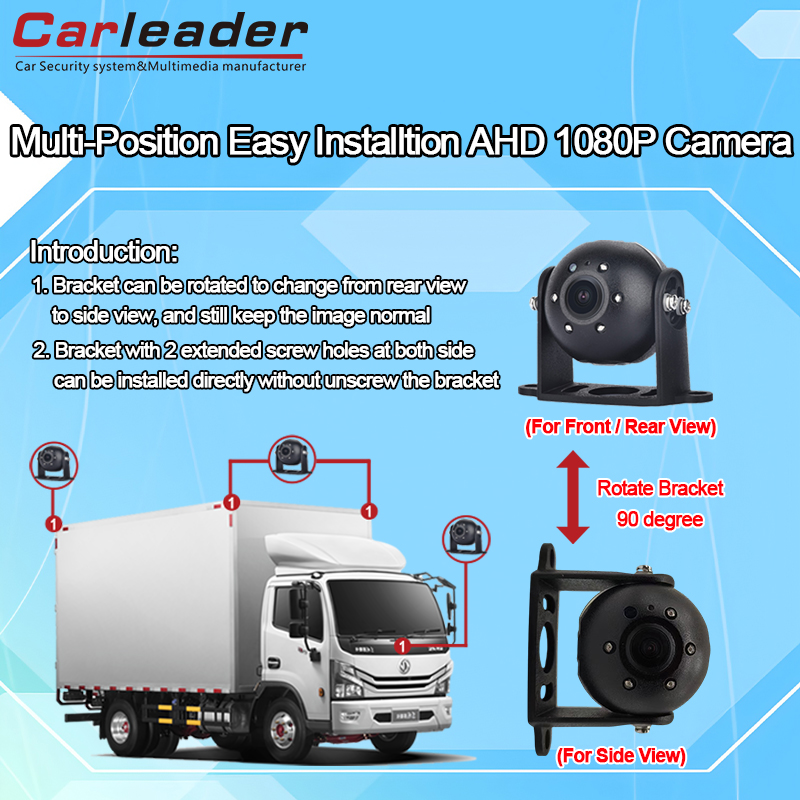 LederAHD Heavy Duty Vehicle Front / Side / Rear View-kamera med monteringshul i beslag på op, ned, højre, venstre, som gør det muligt for kameraet at justere kamerabeslaget, så det passer til forskellige kamerapositioner, såsom front-, side- og bagudsigt, gør dette kamera mere kompatibelt med køretøjets sikkerhedsovervågningssystem.