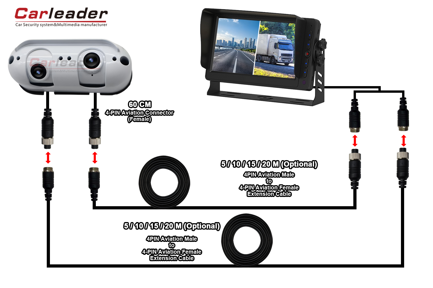 LederAHD Starlight Dual Lens Heavy Duty bakkamera, øger køretøjets sikkerhed og synlighed med dets højopløsningsobjektiv, understøtter dette kamera også WDR-funktion for at forbedre kvaliteten af kamerabilledet. Med disse to ledningsløsninger til option, er den ene nem at ledningsføring, og den anden er høj kompatibilitet. fungerer perfekt med brugeren med forskellige ledningsbehov.