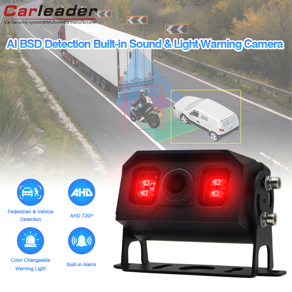 Carleader NylanceretAI Blind Spot Detection Bakkamera Indbygget lyd- og lysalarm, et banebrydende AI-kamera understøtter fodgænger- og køretøjsdetektion, kamera med indbygget advarselslys og alarmfunktion, kan fungere sammen med vores skærm, kan også passe med vores AI-skærm understøtter AI-kalibrering, gør det muligt at justere kameraets detektionszonestørrelse og anden AI-funktion.